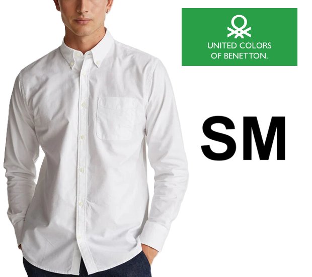 Men's United Colors of Benetton Long Sleeve Knitted Button Down Shirt - SMall - WHITE (Style: 1910005)