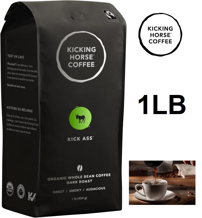 KICKING HORSE COFFEE kick ass dark ROAST organic whole bean - 454G (1LB)