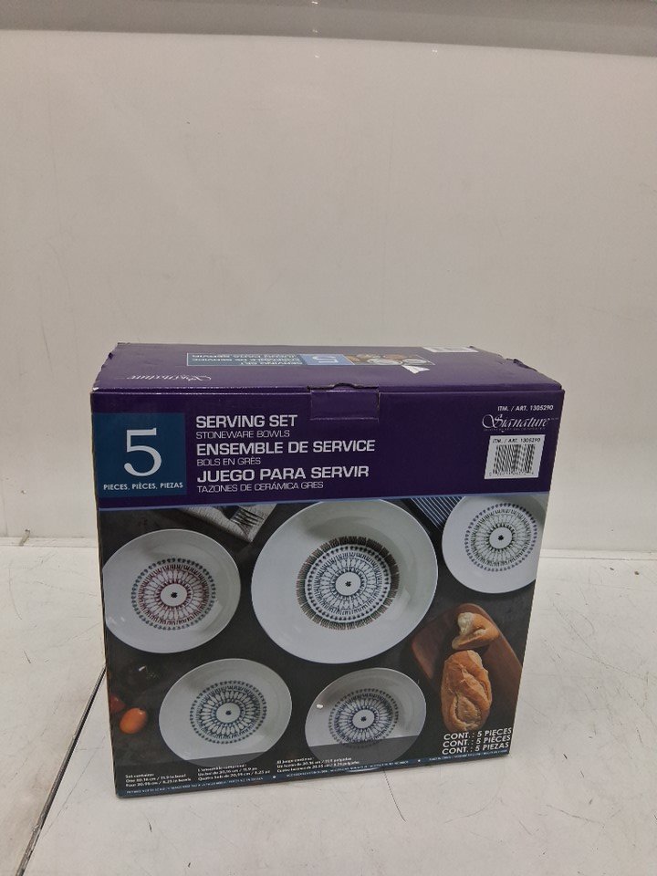 5pc SIGNATURE HOUSEWARE stoneware serving bowls - assorted sizes - multicolor