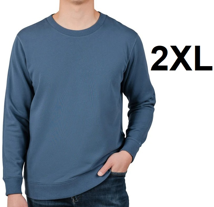 men's rough dress french terry crew sweatshirt - 2XL - Blue (Style: 1910019)