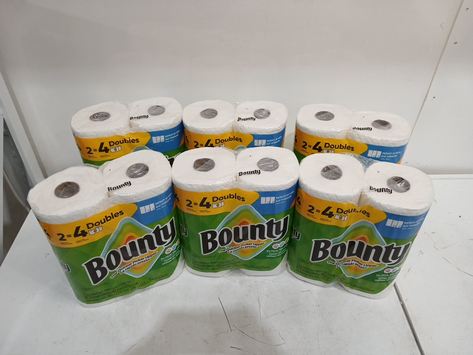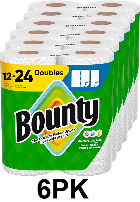 6pk bounty select-a-size paper towels, 12 double rolls + 24 regular rolls - white