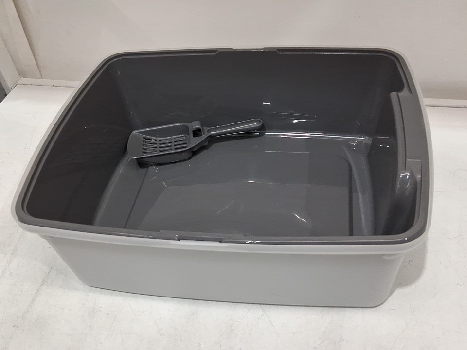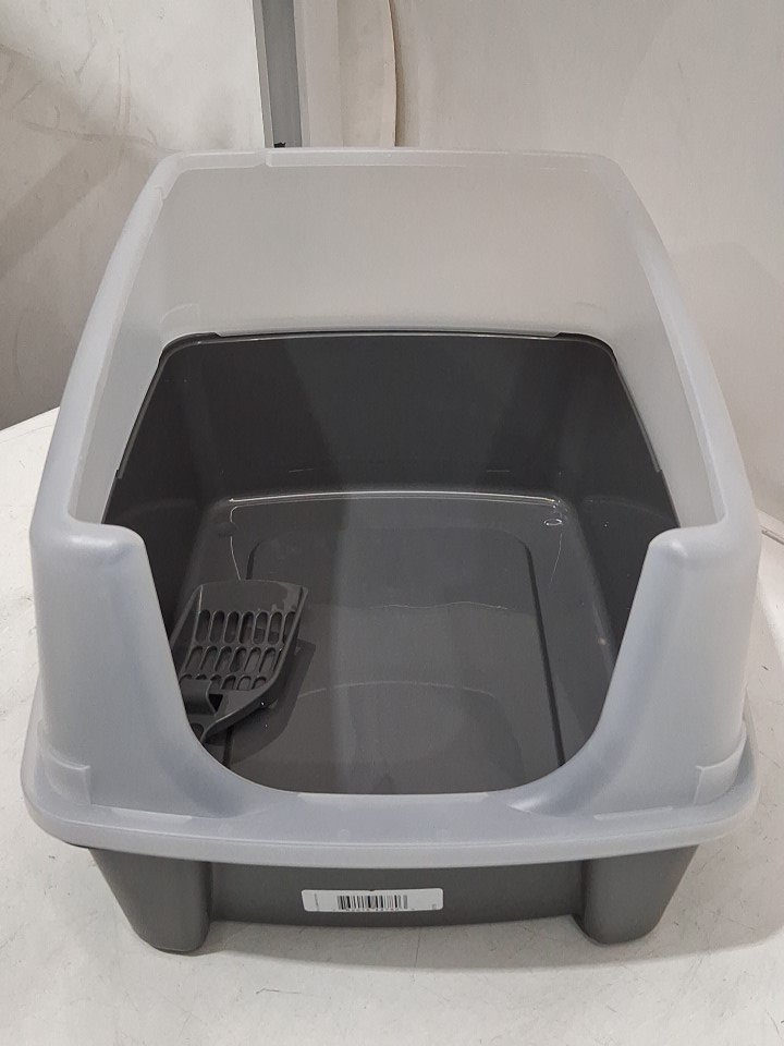 IRIS Open Top Cat Litter Box Kit with Shield and scoop - 16" x 12" - dark grey/CLEAR - (MODEL: CLH-12)