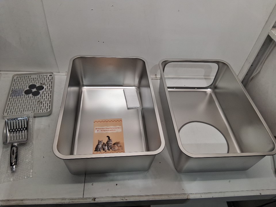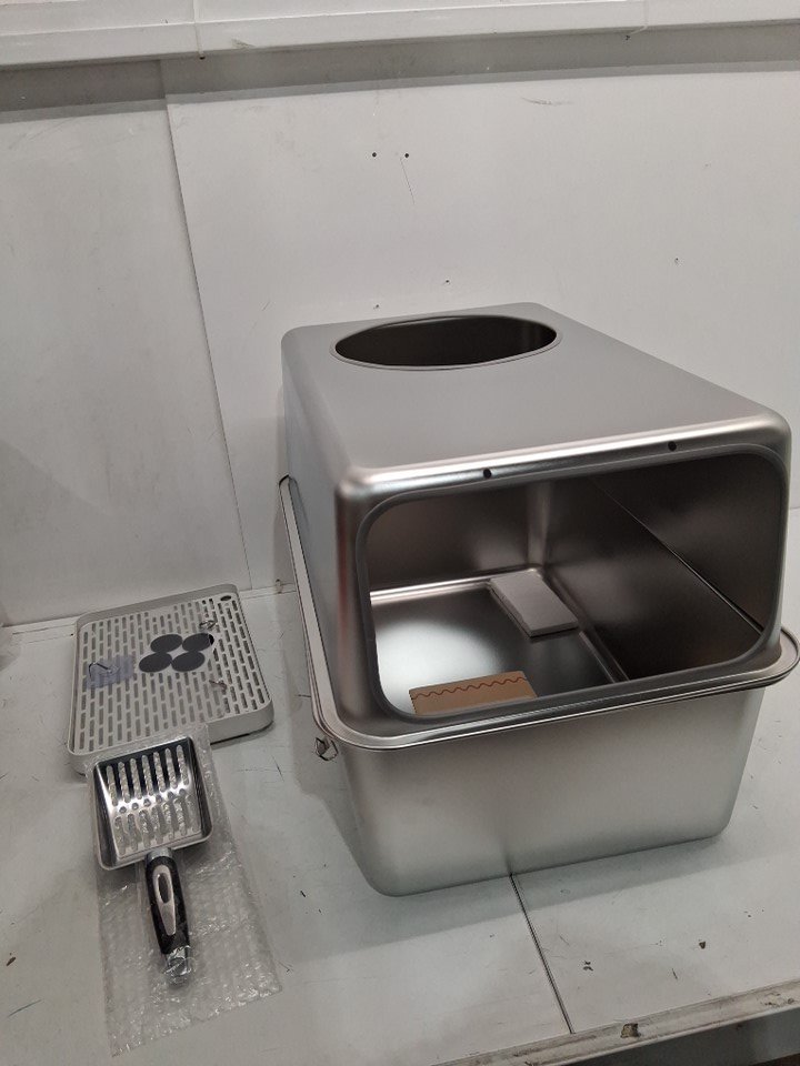 Stainless Steel Litter Box with Lid - XL - SILVER