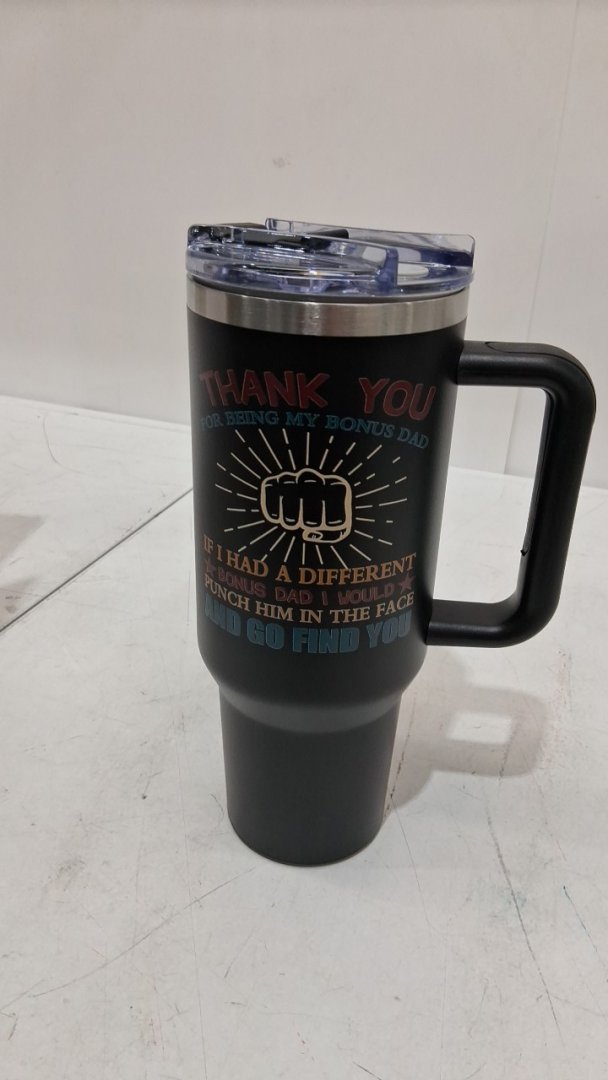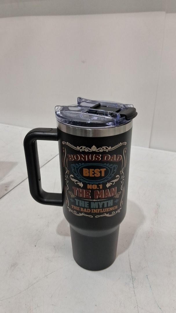 NIAXAUYT CUSTOM "BONUS DAD" TUMBLER WITH STRAW AND BRUSH SET - 40OZ - BLACK