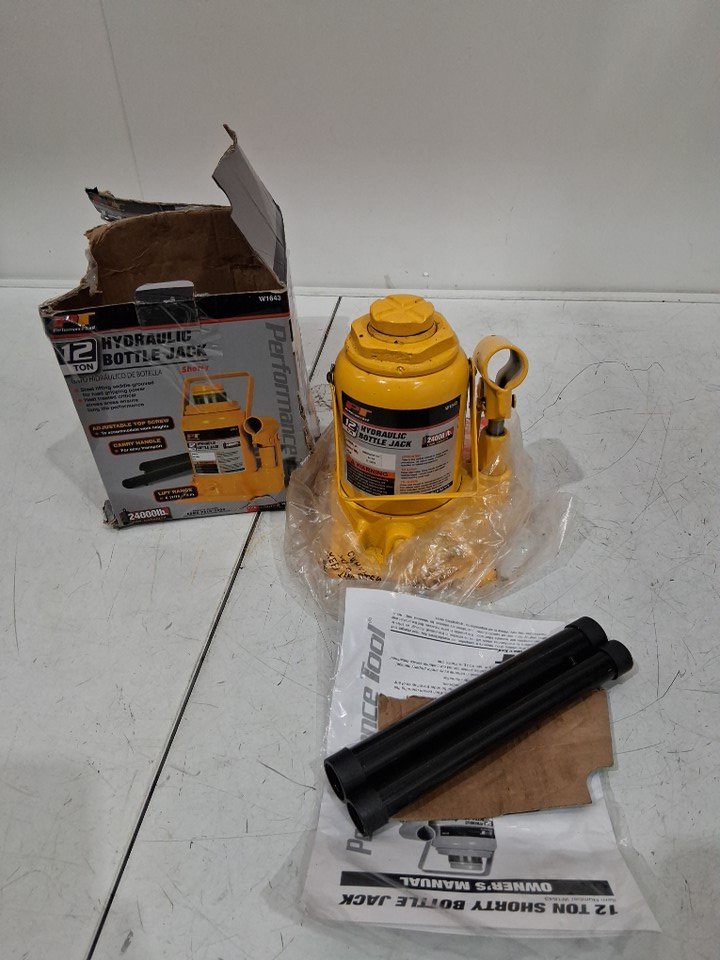 PERFORMANCE TOOL HEAVY DUTY SHORTY BOTTLE JACK, 12TON/ 24000LBS CAPACITY, YELLOW, (MODEL:W1643)