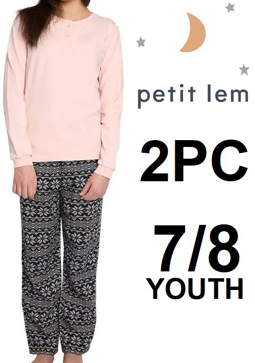 2pc girl's Petit Lem Pajama pants and LONG SLEEVE shirt - 7/8 - black / PINK (Style: 9553535)