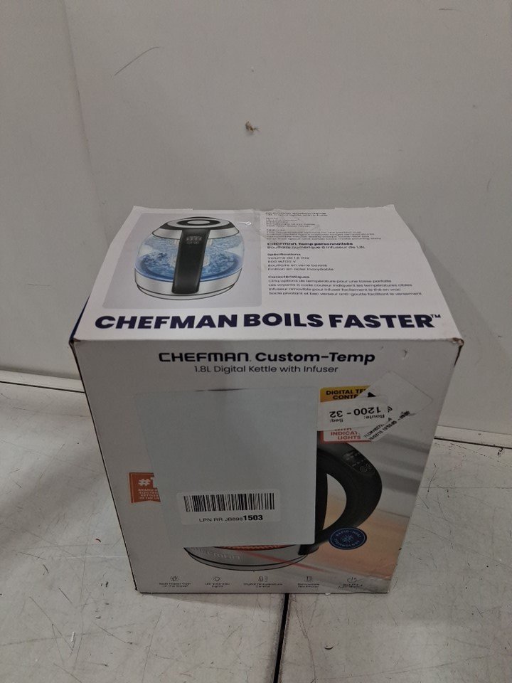 CHEFMAN ELECTRIC custom temp GLASS KETTLE WITH TEA INFUSER - 1.8L - STAINLESS STEEL (MODEL: RJ11-17-CTI-RL-ca-am)