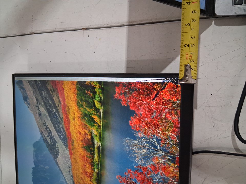 Please See Photos: - The screen has some damage (minor cracks throughout the glass) - The biggest one is <1" and goes vertically on the right side of the screen & display (See Photos) - There is another couple of black spots at the bottom of the screen