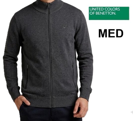 men's UNITED colors of Benetton full zip collar sweater - medium - charcoal grey (style:1804006)