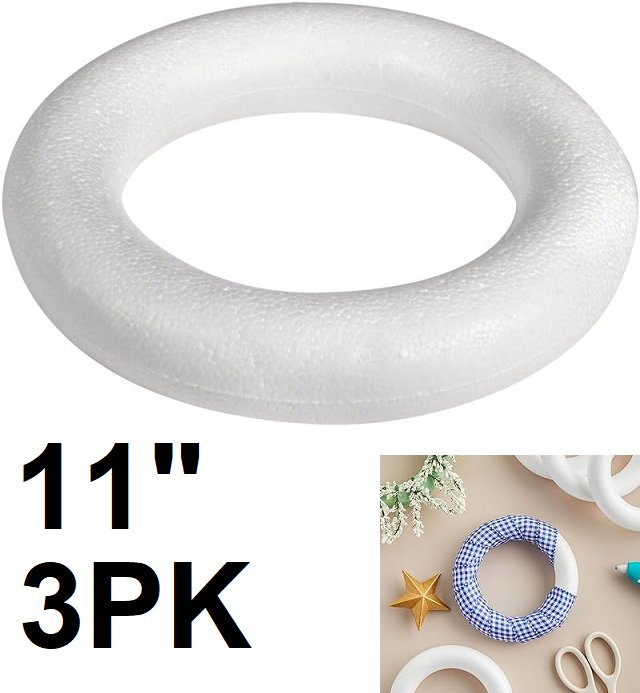 3pk multipurpose polystyrene round foam circles for wreath making - 11" - white
