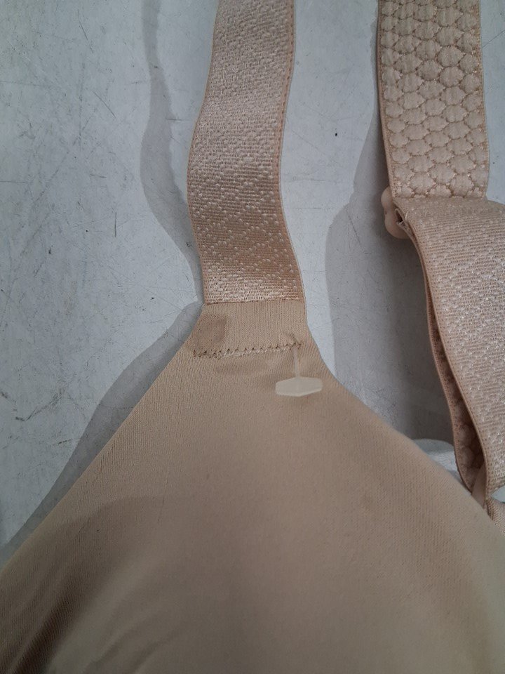 Item has minor dirt residue present on the front top left bra cup near strap, likely from shipping and handling (see photos).