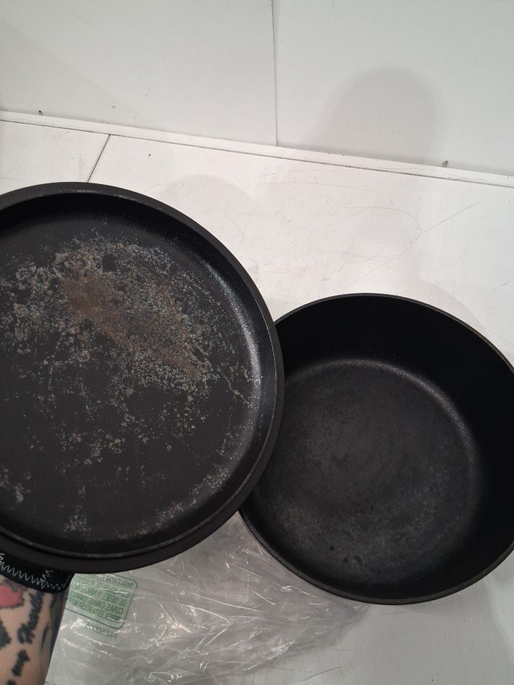 pot has visible scuffing and residue from previous use