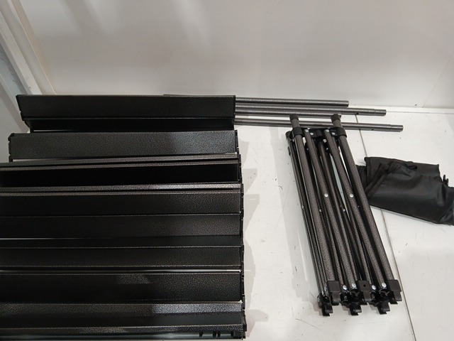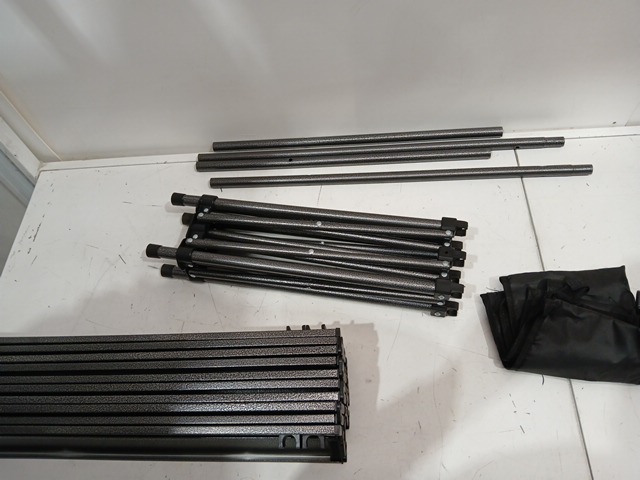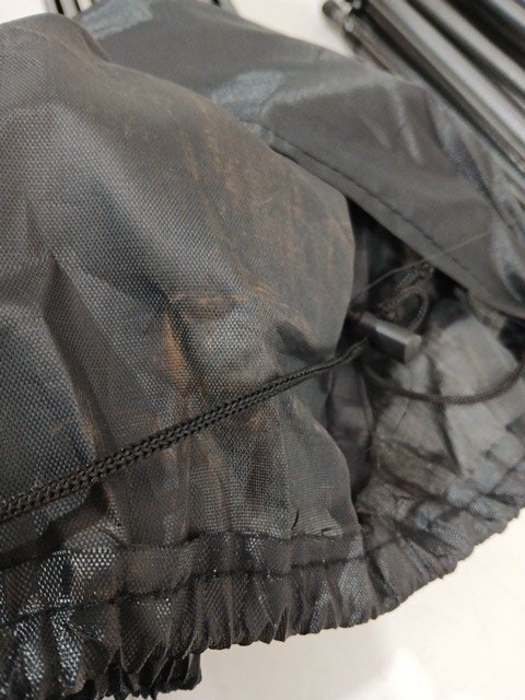 There is some discoloration on the carrying bag. There is no manual so we cannot determine if hardware/all pieces are included.