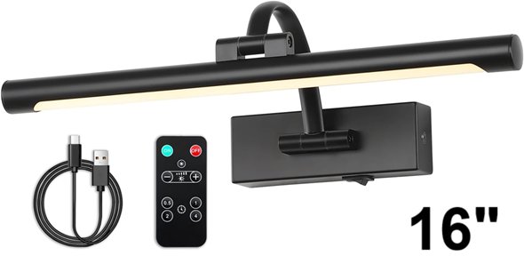 Wireless battery powered wall mounted picture light with remote - 16" - black