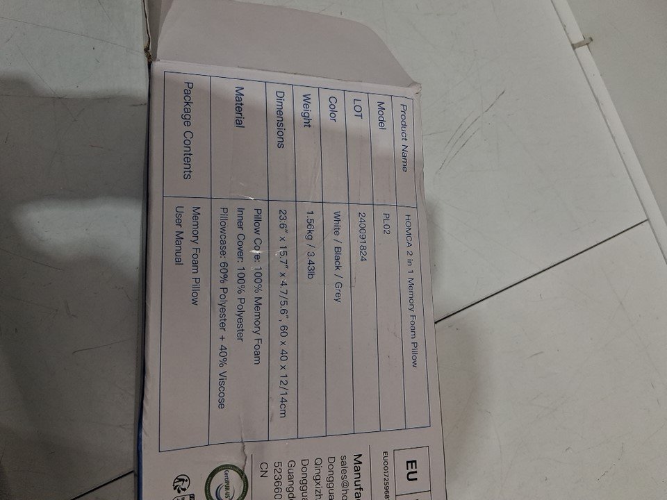 HOMCA 2-IN-1 3D CURVE Ergonomic Memory Foam Pillow for Side, Back & Stomach Sleepers - 15.7" x 23.6" - White/Grey (model: PL02)
