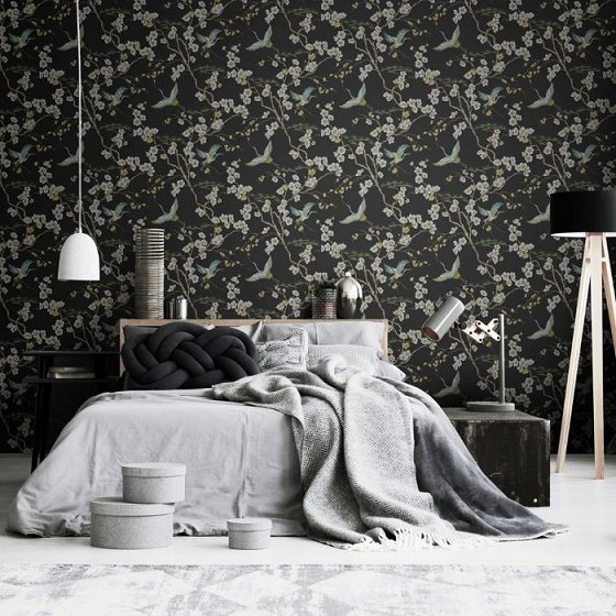 SUBLIME ~33FT x 20.5" WALLPAPER, JAPAN CRANES/BLACK GRAHAM AND BROWN (MODEL: 105984)