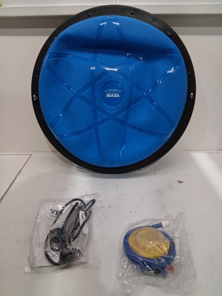 full body trainer half exercise balance ball with resistance bands & pump - 23" - blue (Model: ‎58-XC-01)