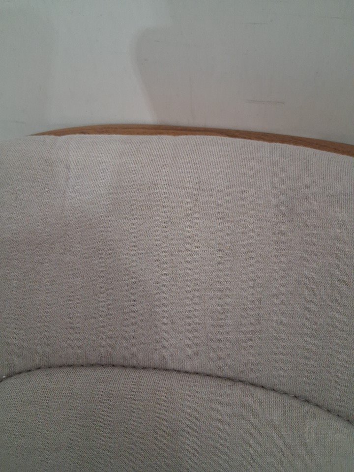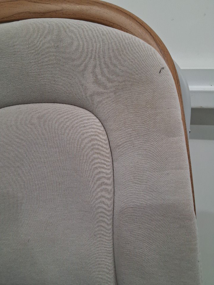 There is a stain on the top right side of the pad from previous use, and there is also some hair on the fabric as well. The stain may come out of the pad after being washed. (Please see photos)