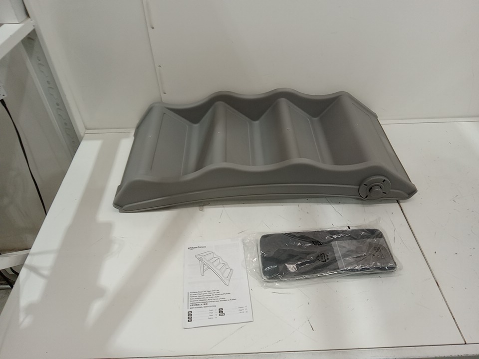 amazon basics folding pet stairs - 14.6" x 22.75" x 19.5" - grey
