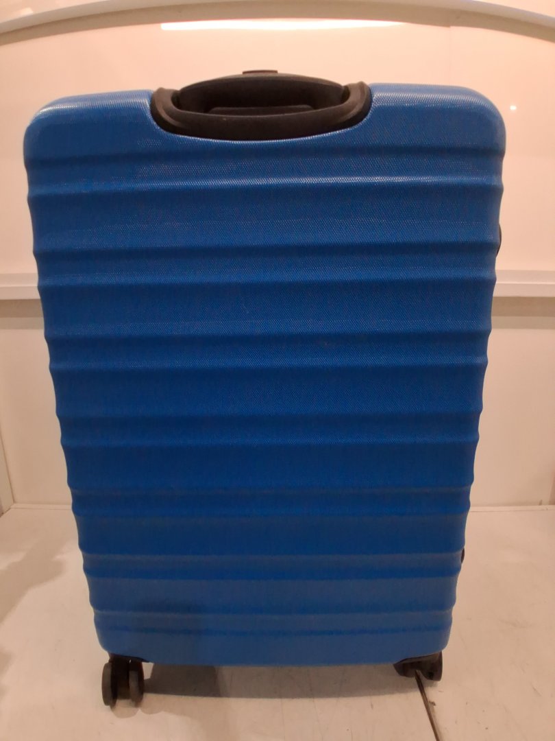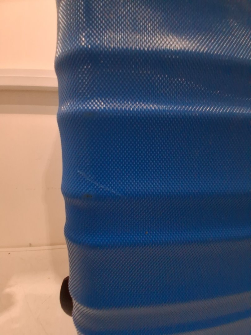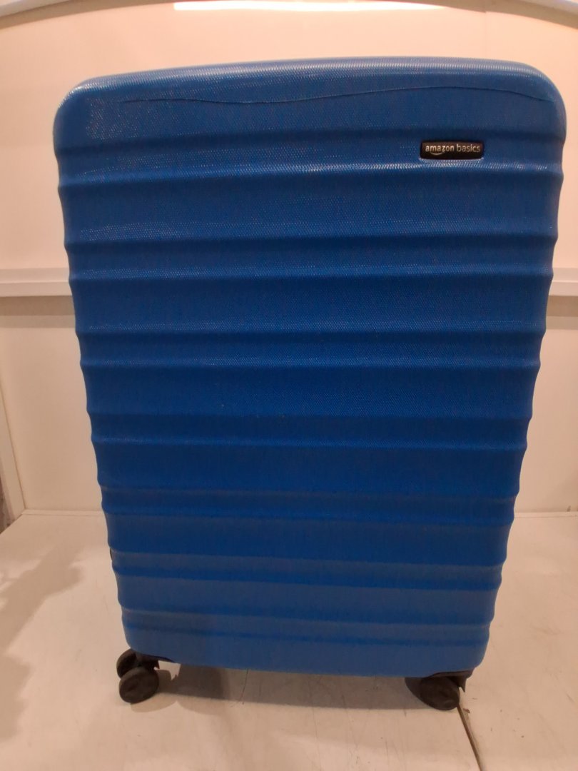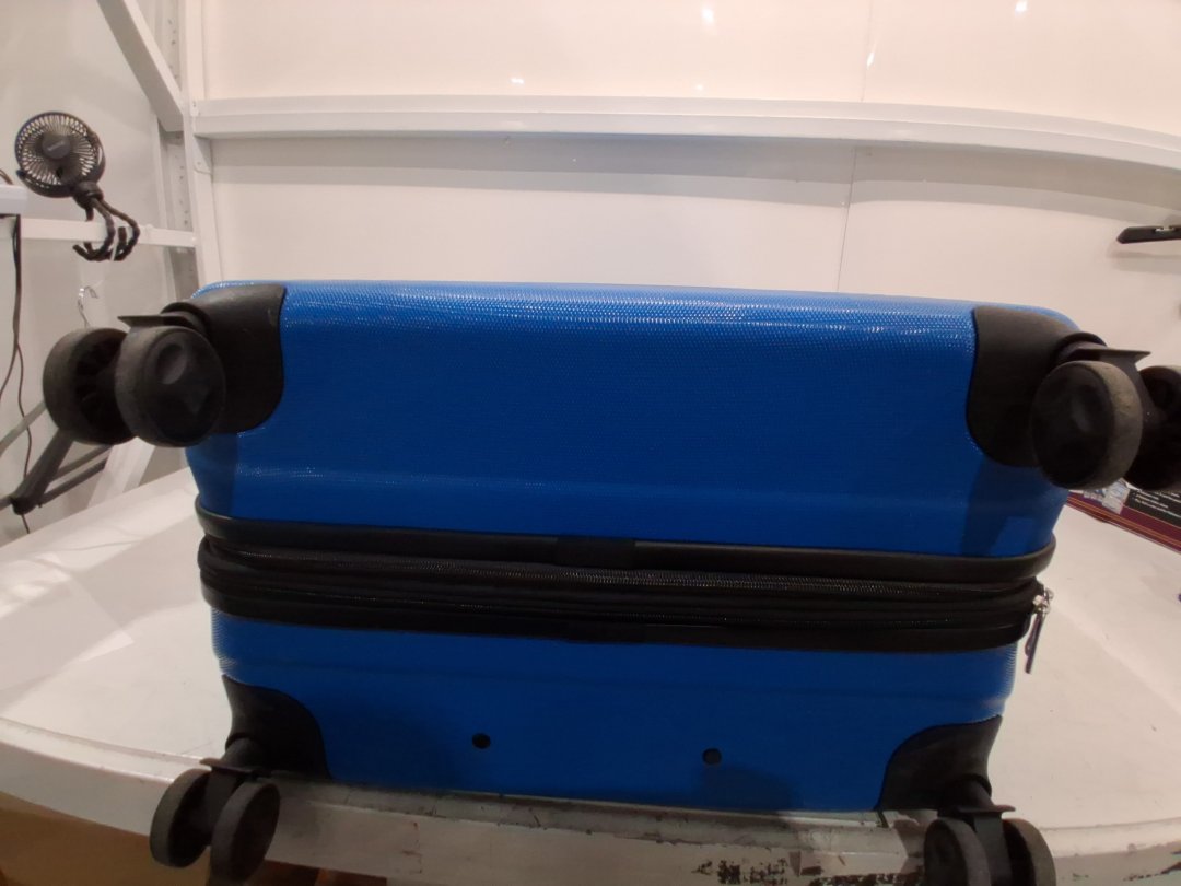 It has a scratch across the top front and some scuff marks and there is minor wear on the wheels from previous use - see photos