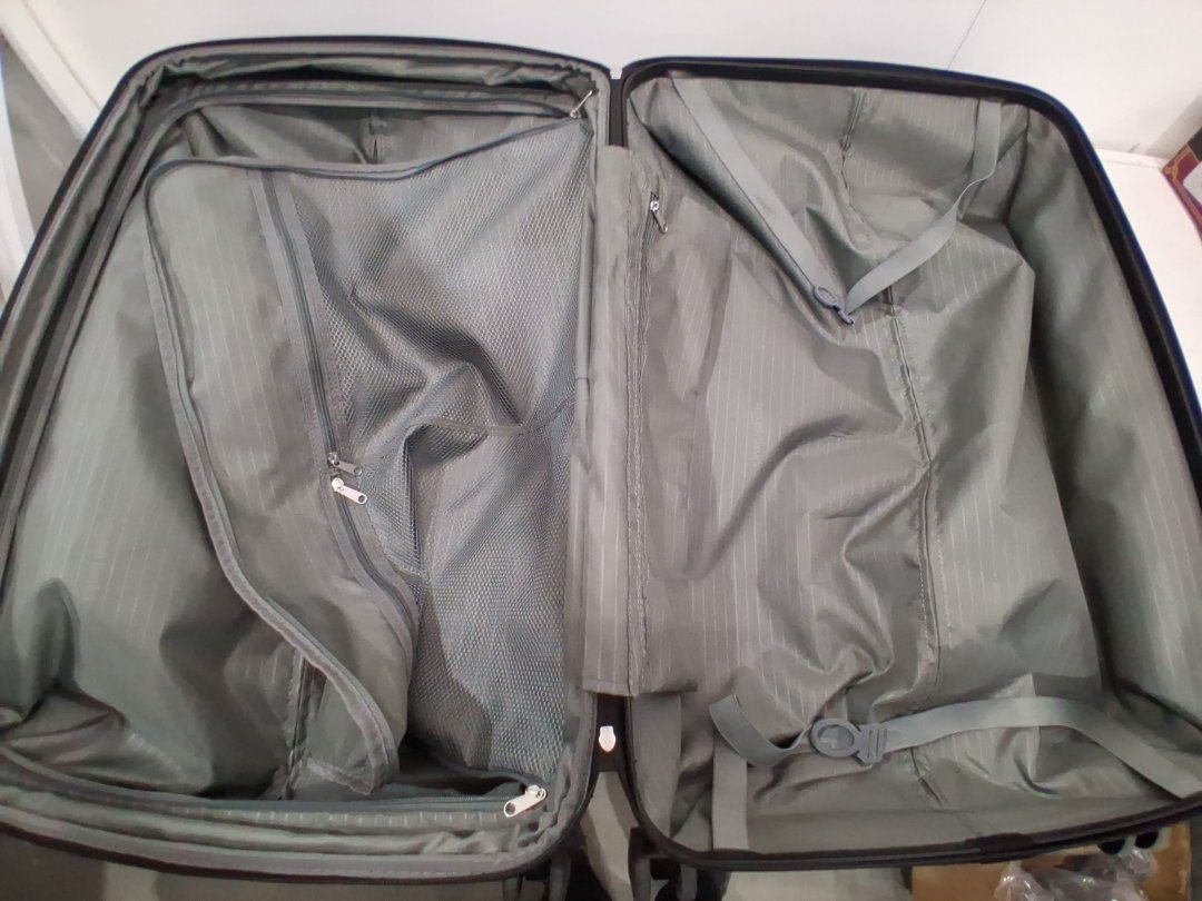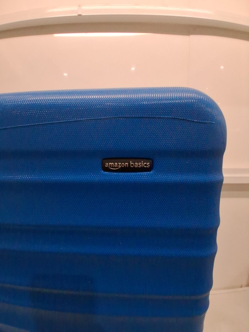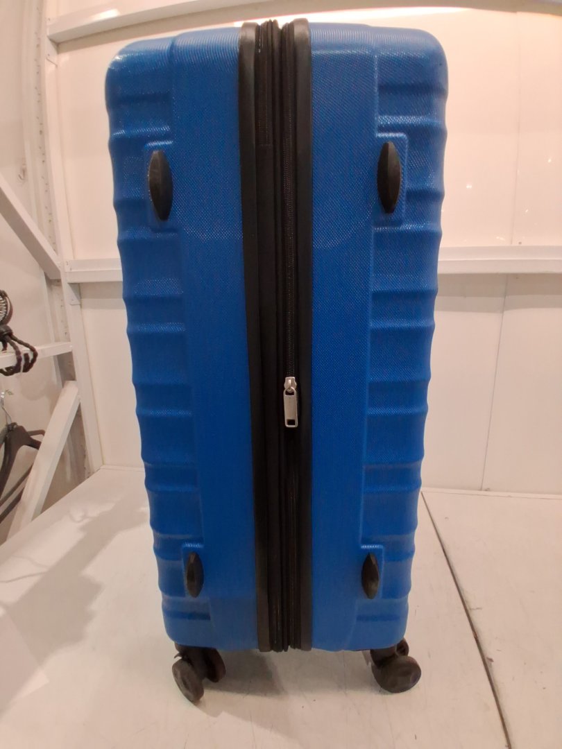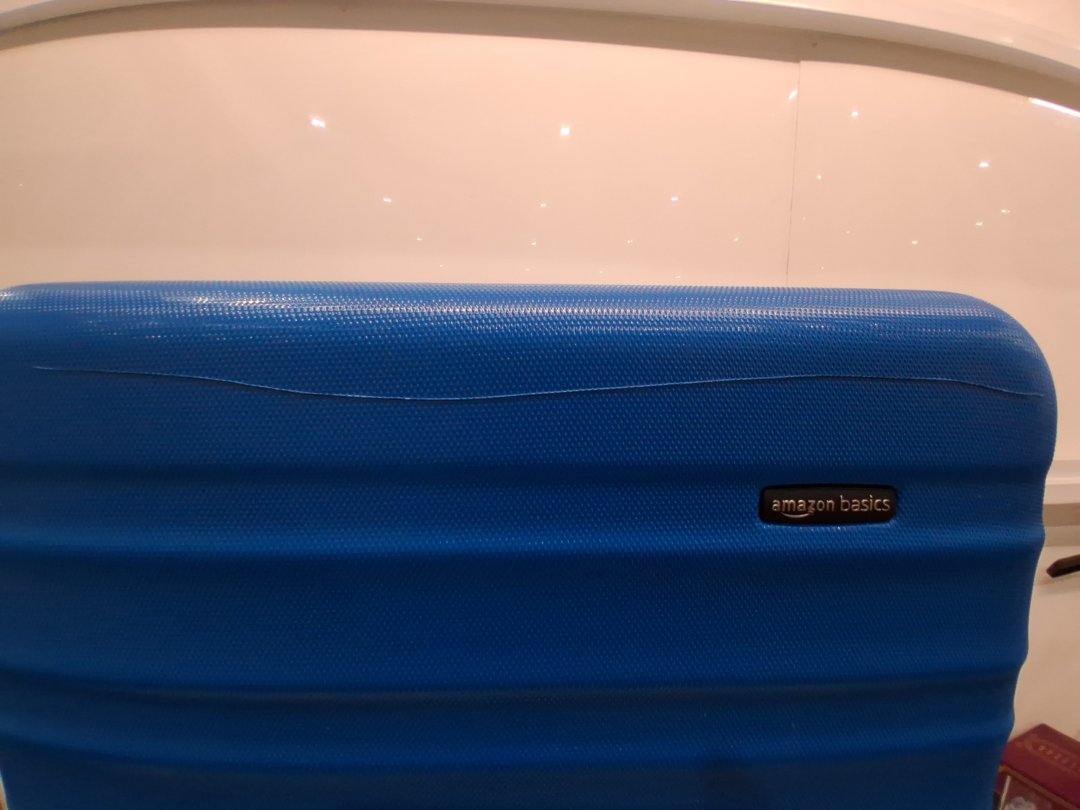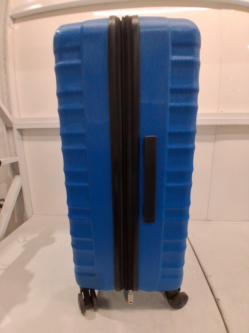 It has a scratch across the top front and some scuff marks and there is minor wear on the wheels from previous use - see photos