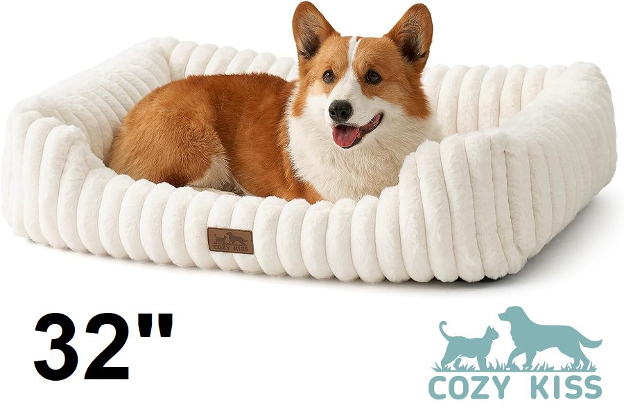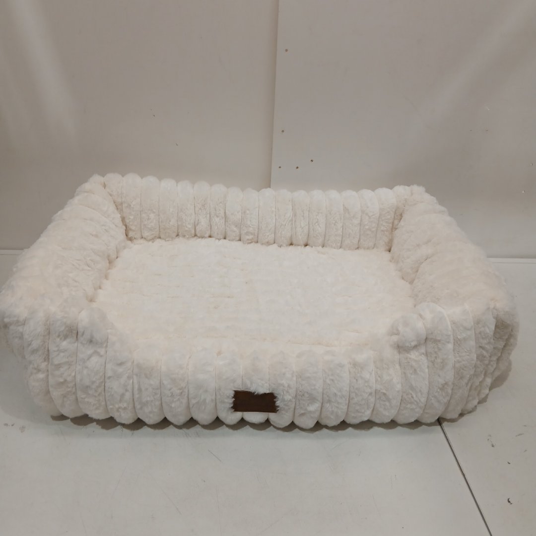 Cozy kiss chenille plush pet bed with removable bottom cushion - 32" - cream/off white