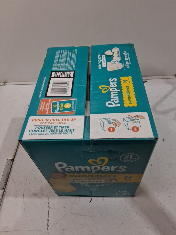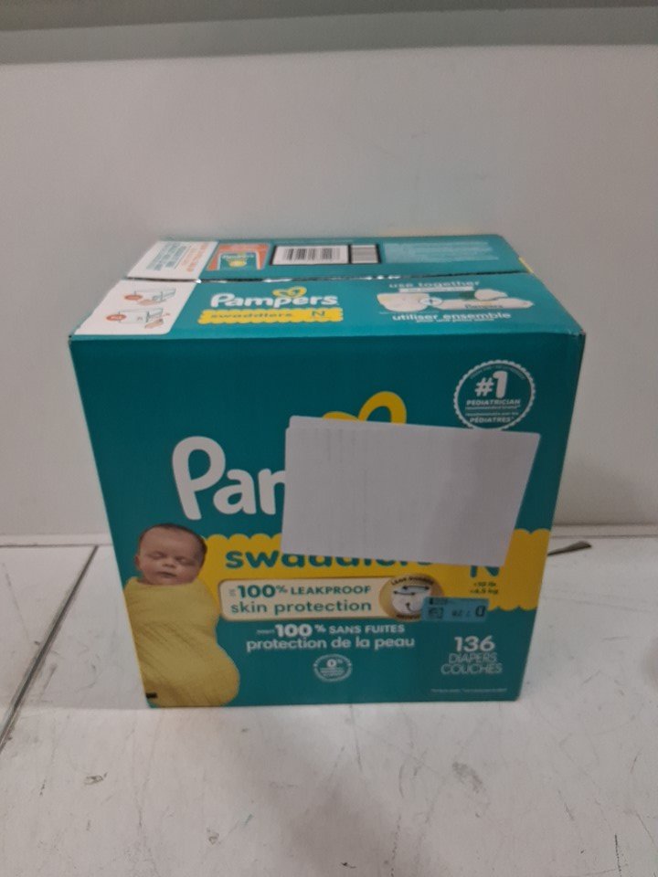 136PK PAMPERS SWADDLERS DIAPERS - NEWBORN SIZE