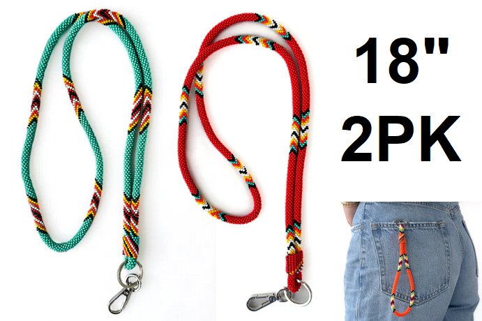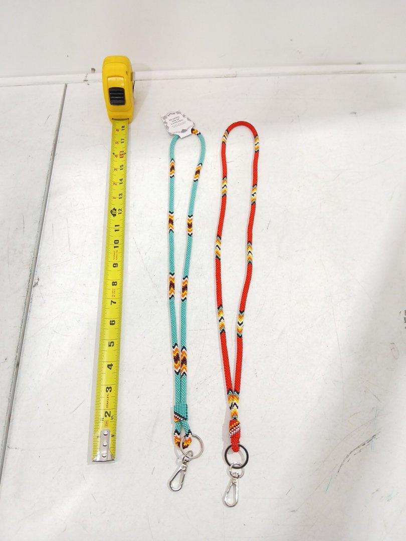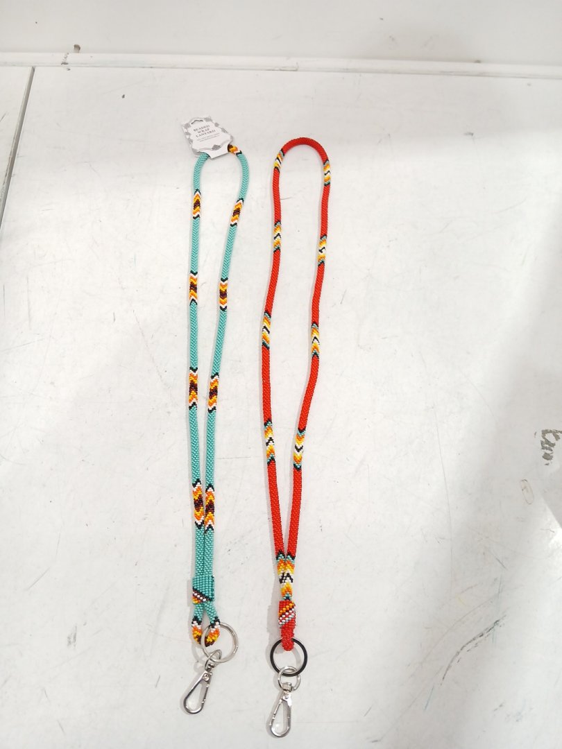 2pk niibin first nations handmade beaded lanyards - 18" - teal/red