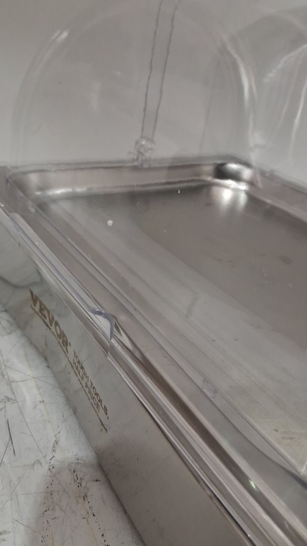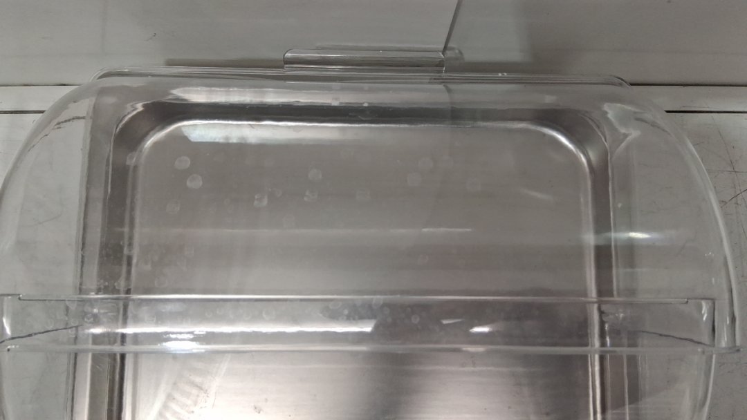 Please note that there is some residue on the lid and on the top tray (see photos) due to previous light use. There is also a dent on the front side (See photos), lid still fits on.