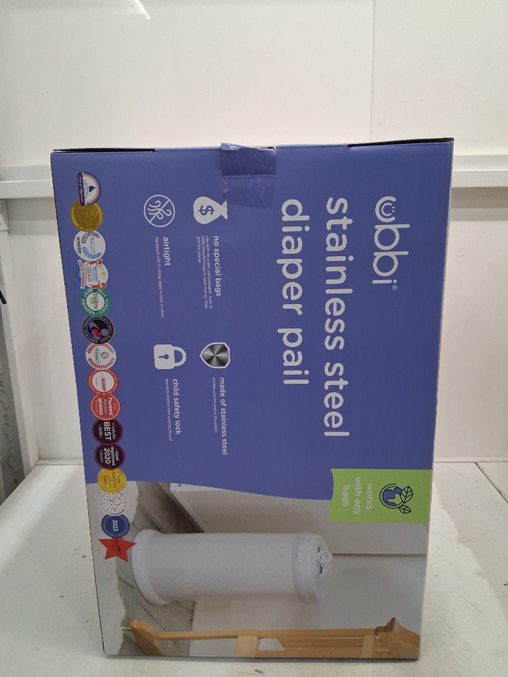 UBBI STAINLESS STEEL Odour Locking diaper PAIL - 13 GAL - 8.5ā€ x 17.75ā€ x 10ā€ - WHITE
