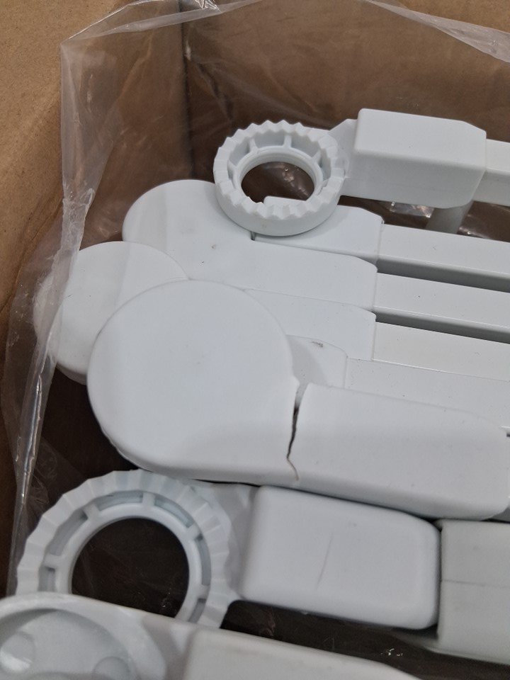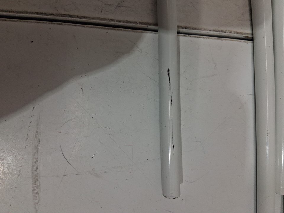 one of the connectors is broken but it still works, and one of the small bars is scratched (see photos)
