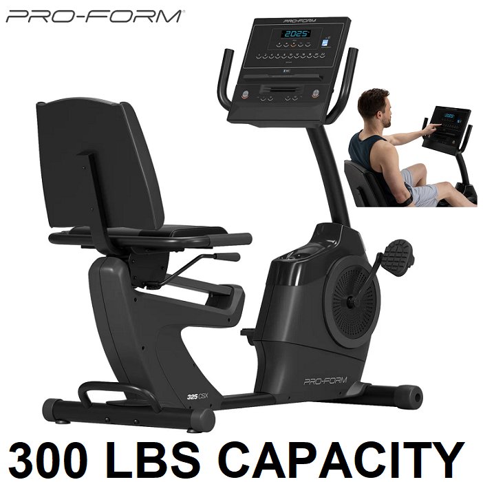 Proform 325 CSX Bike with lumber supported adjustable cushion seat, usb-c port, Coolaire workout fan and DIGITAL DISPLAY - 300lbs capacity - BLACK (MODEL:PFEX43925.4)