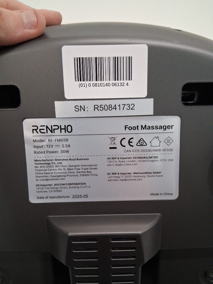 RENPHO shiatsu FOOT MASSAGER with heat and COMPRESSION - BLACK/grey (MODEL: rf-fm059r/rf-fm059r-h)