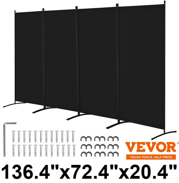 VEVOR Room Divider 4 Panels Fabric Privacy Screen - 136.4"x72.4"x20.4" - black (model:pffstghs07)
