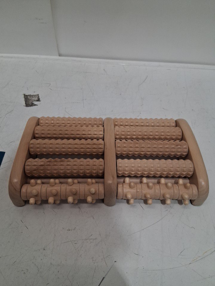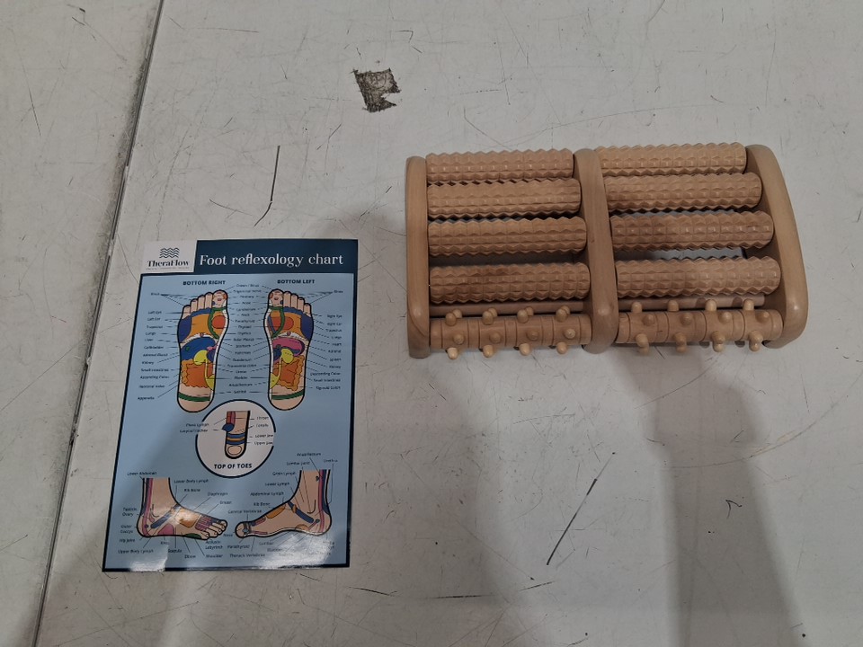 THERAFLOW WOODEN DUAL STRESS-RELIEF FOOT MASSAGER ROLLER and chart (MODEL:THFFRL008)