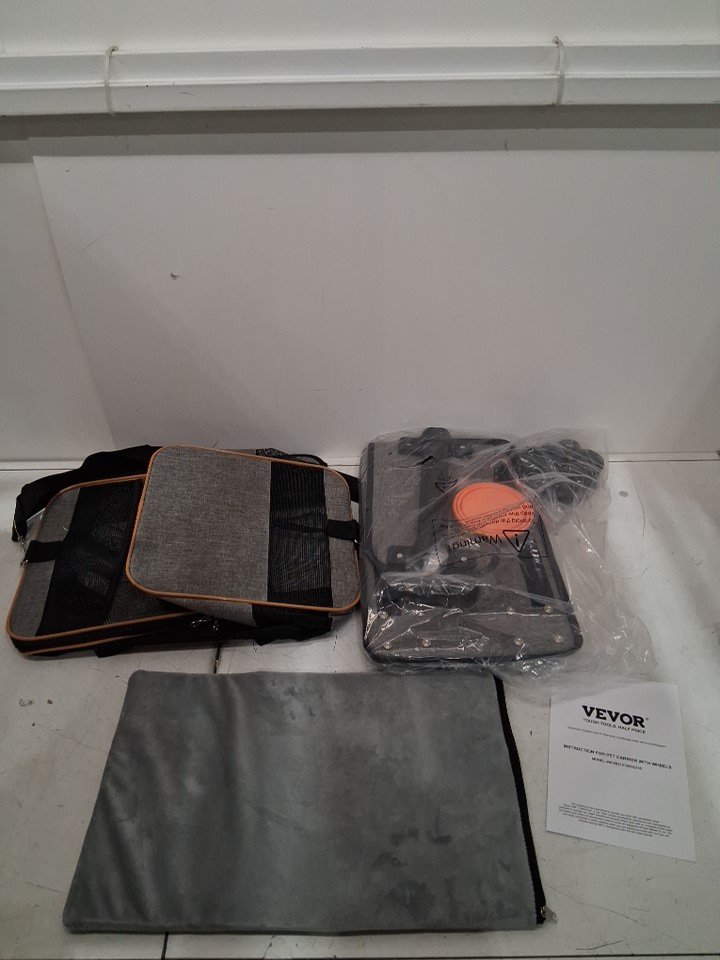 VEVOR pet Carrier with Wheels, collapsible bowl, and strap Airline Approved - 22lbs cap - grey/black - (Model: JW-XB21212255(218))