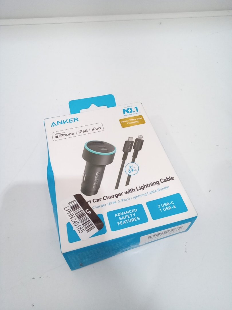 2PC Anker Triple Port Car Charger with Lightning Cable, 2 USB-C, and 1 USB-A Port - 67W - 3FT - Black (Model: B2376H12-1)