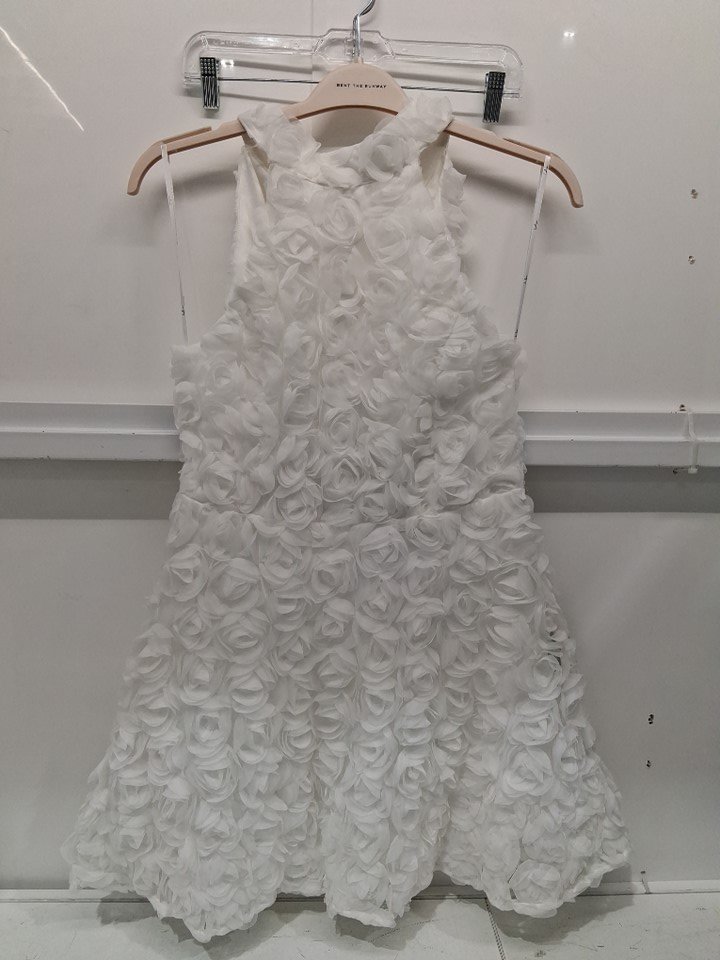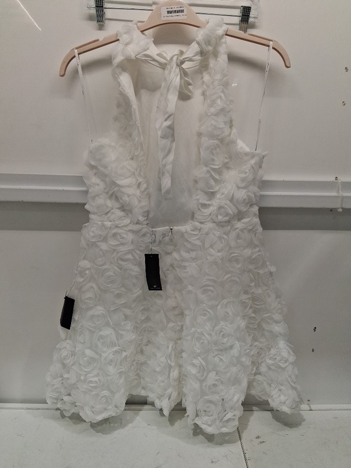 women's lulus Beloved Blossoming 3D Floral Halter Backless Mini Dress - medium - white