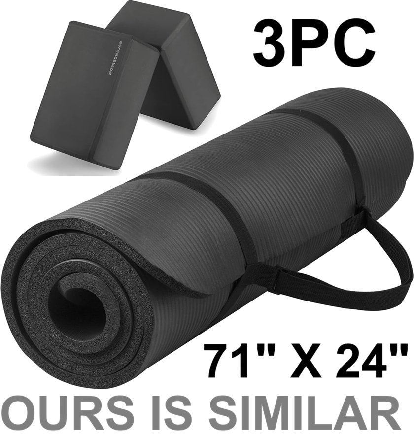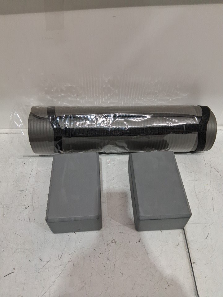 3pc Yoga Mat with Carrying Strap Yoga Balancing Blocks - 71"x24" - green