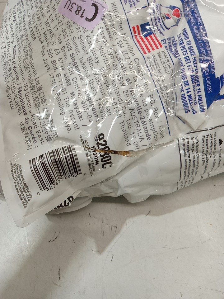 the bag has a rip in the back, and some of the food might have fallen out. but most of the food is still there. please see photos