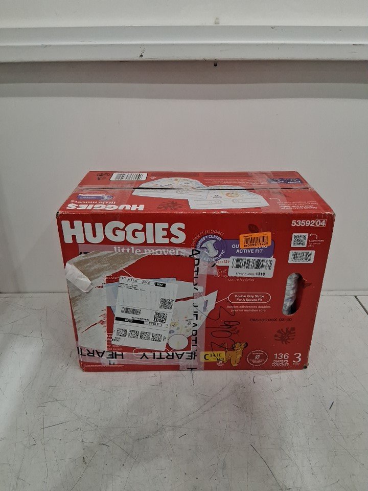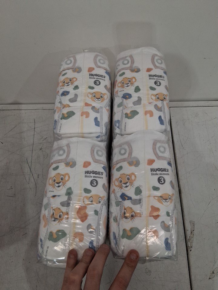 136PK HUGGIES LITTLE MOVERS BABY DIAPERS curved & stretchy fit - SIZE 3 - LION KING
