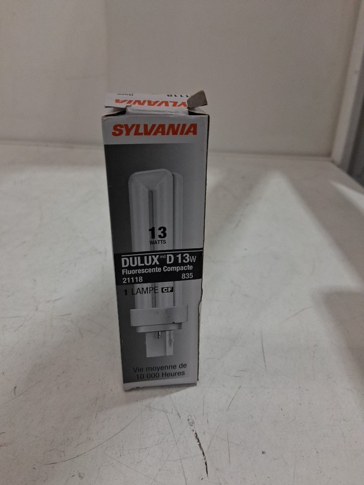 SYLVANIA DULUX D COMPACT FLUORESCENT LIGHT BULB - 13W -3500K- warm white (model: 21118)