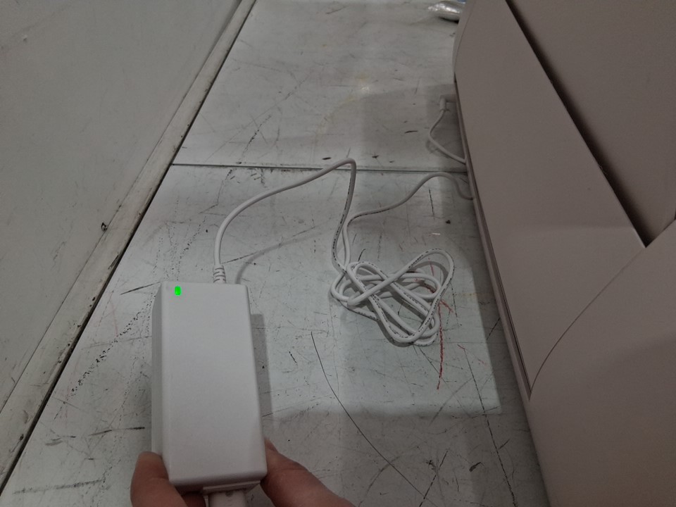 Item does not power on. Power cord shows green light for power but the machine does not receive power/turn on. Will need to be fixed and serviced. Also some residue on the top left of the item.