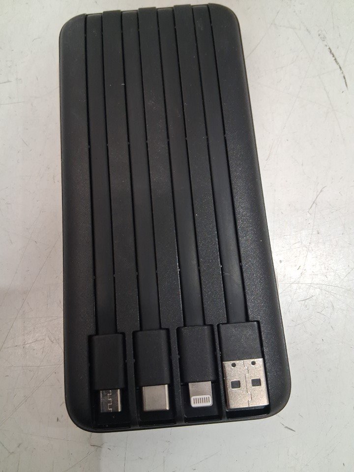 charmast power bank with built in cables - 10000 mah - 5 3/4" - black (model: w1148)