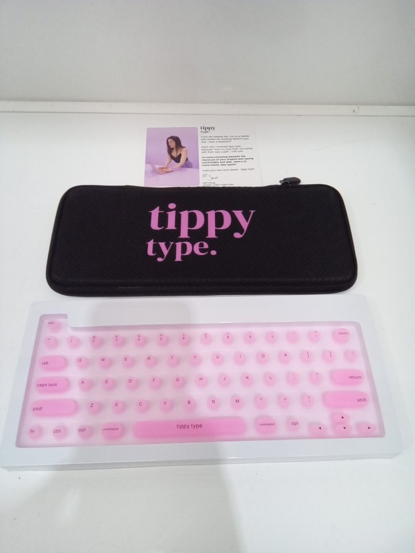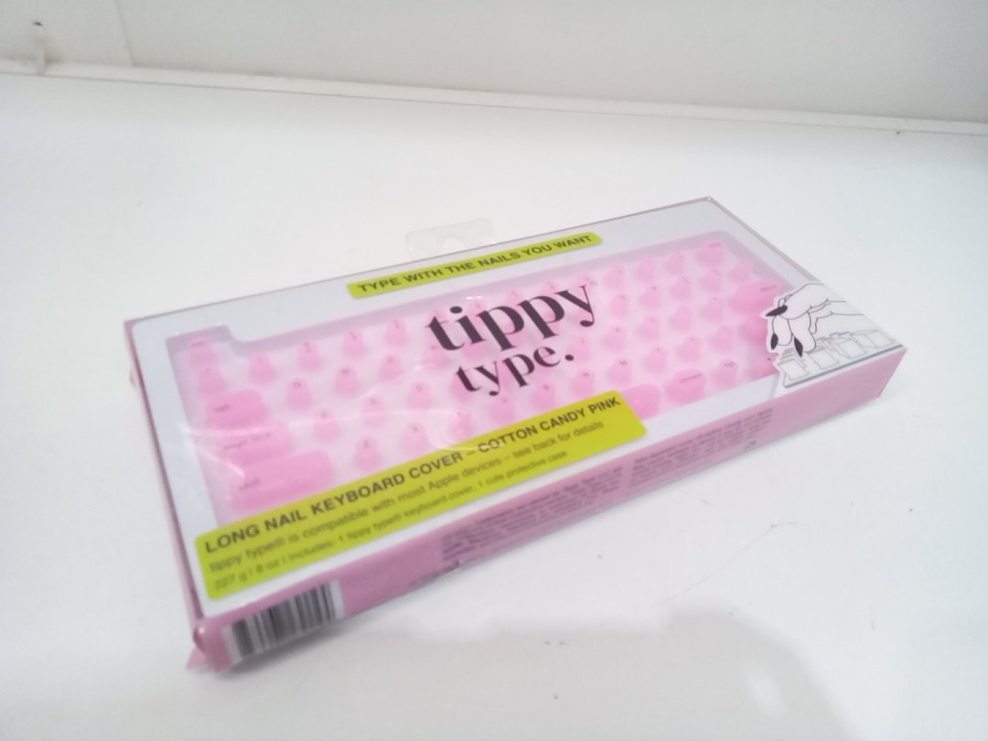 2PC Tippy Type Silicone Long Nail Keyboard Cover With Hard Case - Compatible with most Apple Devices - COTTON CANDY PINK