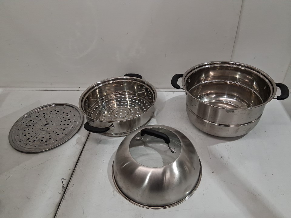 mano 2 tier stainless steel steamer pot - 14.2" - silver