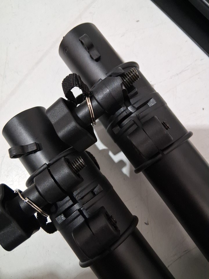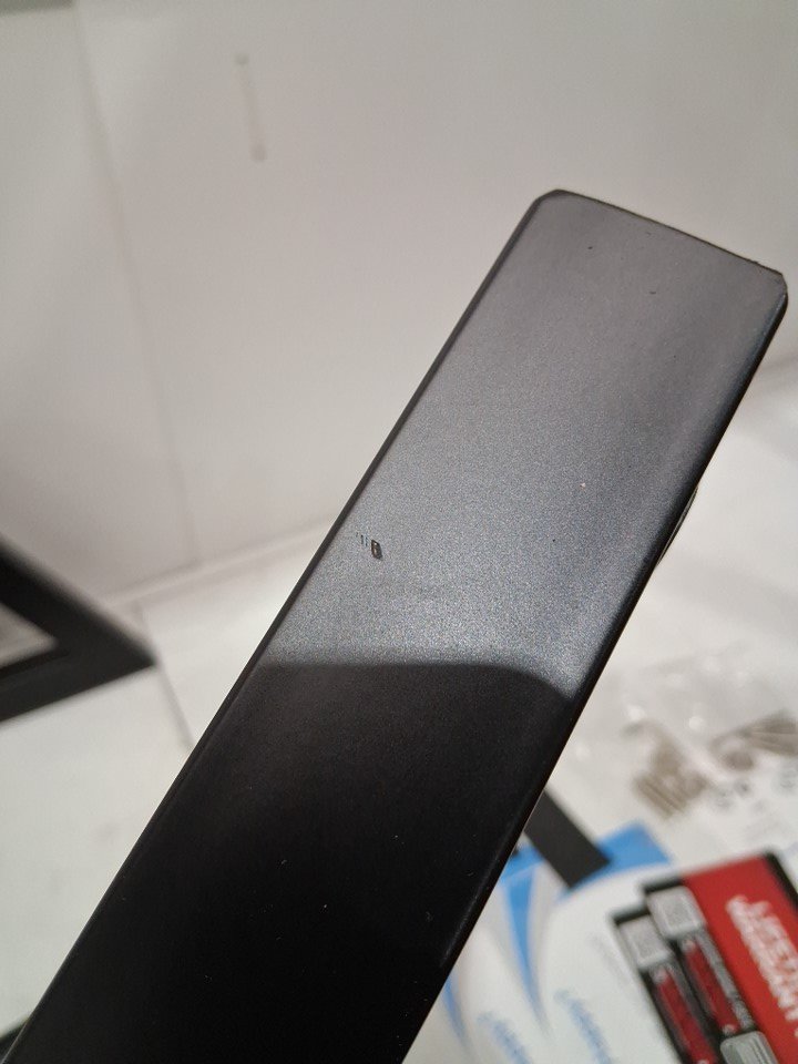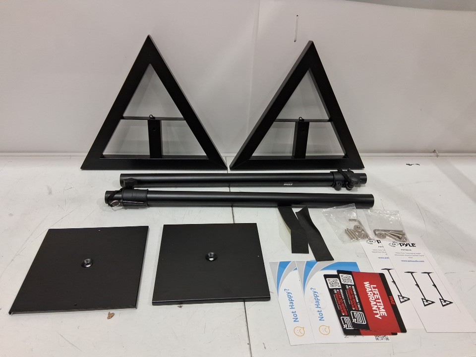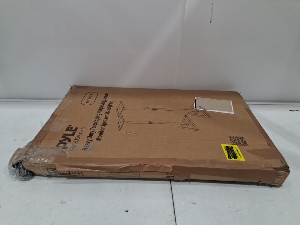 Item appears to be previously assembled. There are also minor scuffs and scratches present throughout, likely from assembly or shipping & handling. In addition, one of the stands adjustment clips is slightly broken. Item is also missing 2 non-slip pads (see photos).