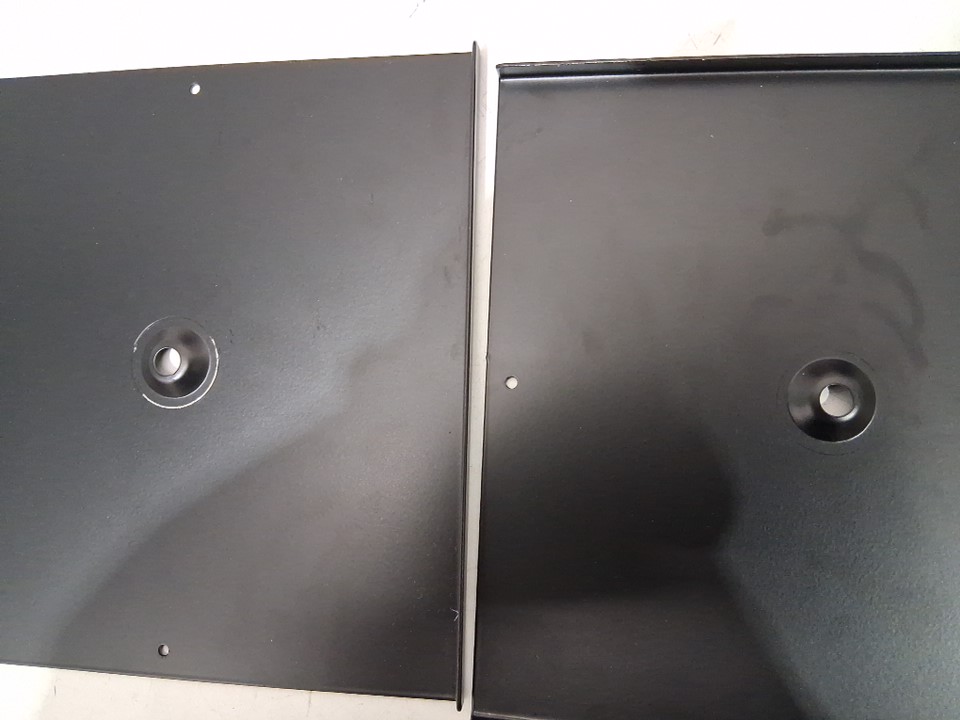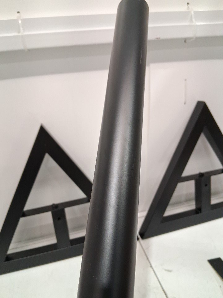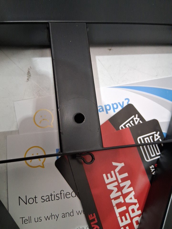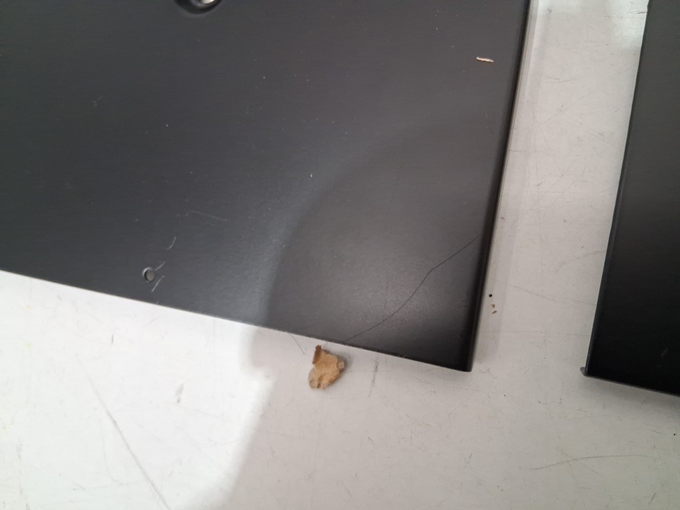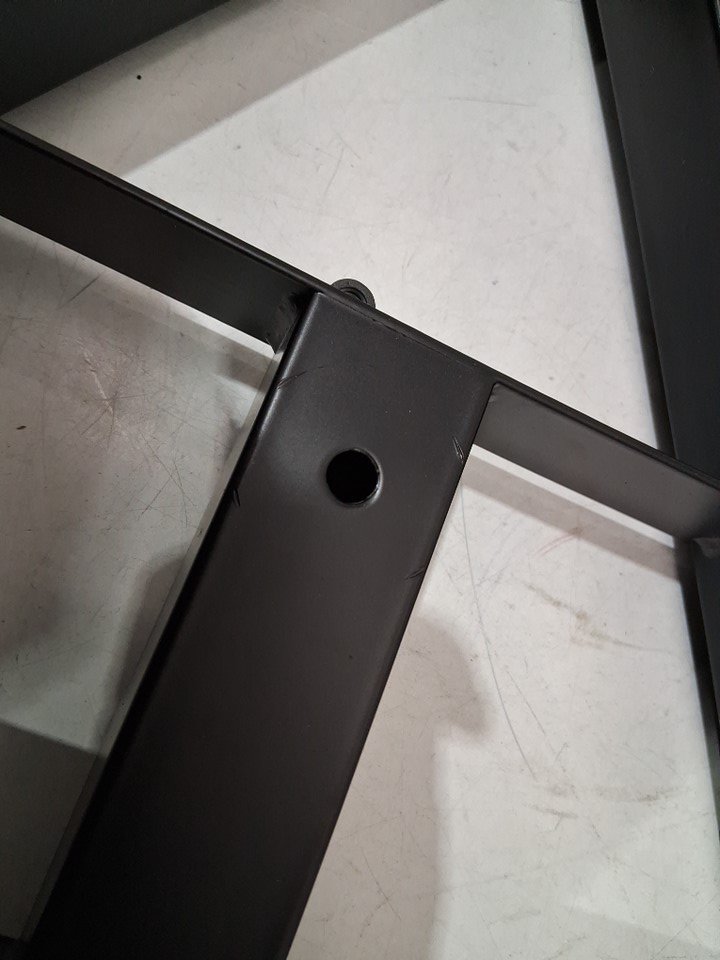 Item appears to be previously assembled. There are also minor scuffs and scratches present throughout, likely from assembly or shipping & handling. In addition, one of the stands adjustment clips is slightly broken. Item is also missing 2 non-slip pads (see photos).