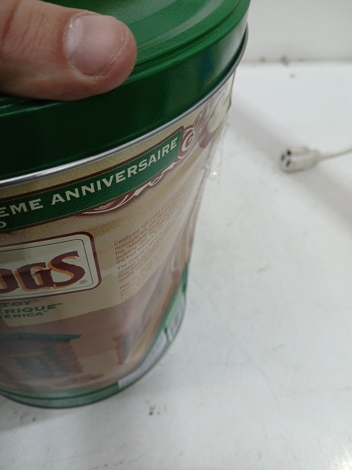 tin is damaged. has dent in side