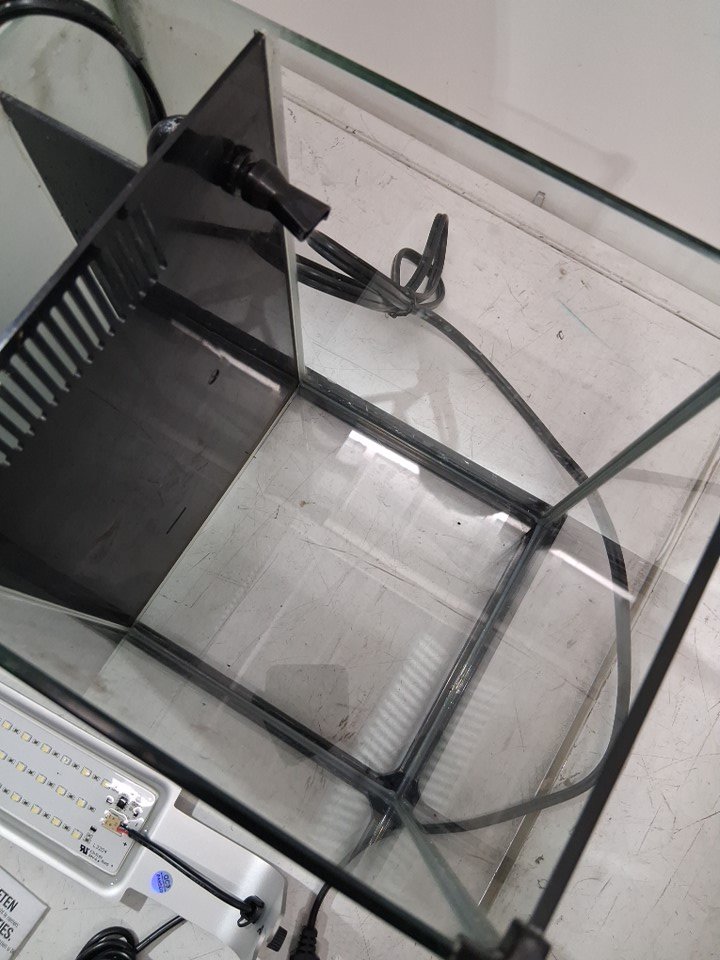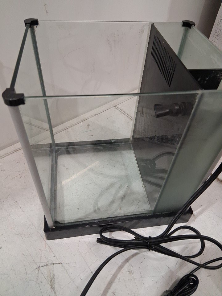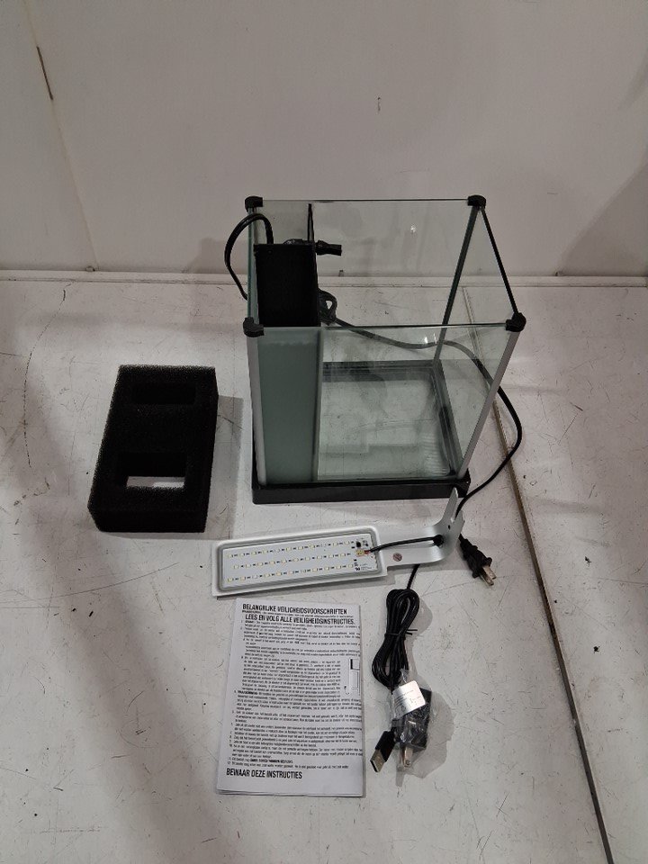 item has some water residue on sides and lid, filter has small amount of debris but no major build up, light was tested please note included pump did not work during testing but can be removed and replaced if desired